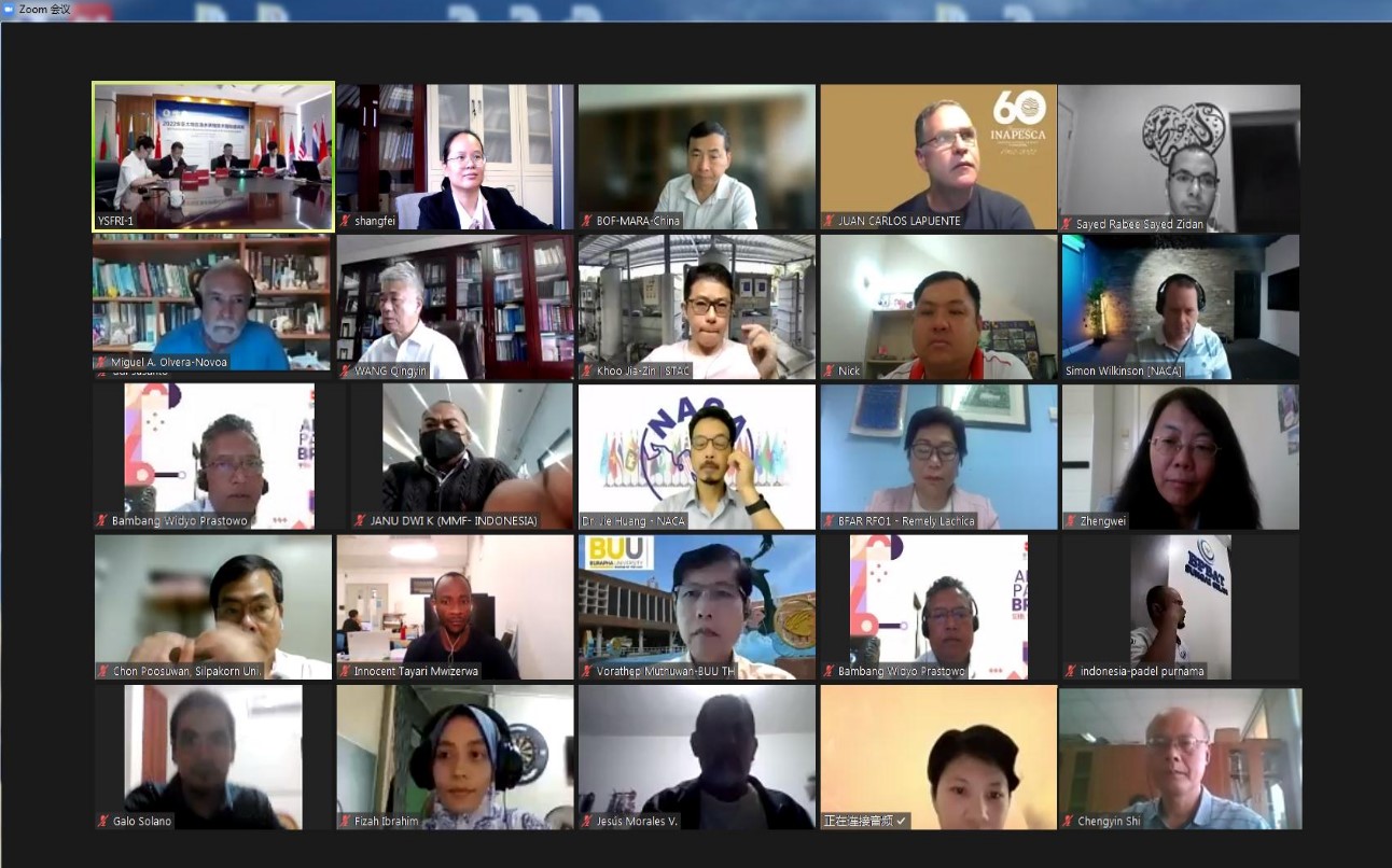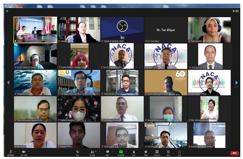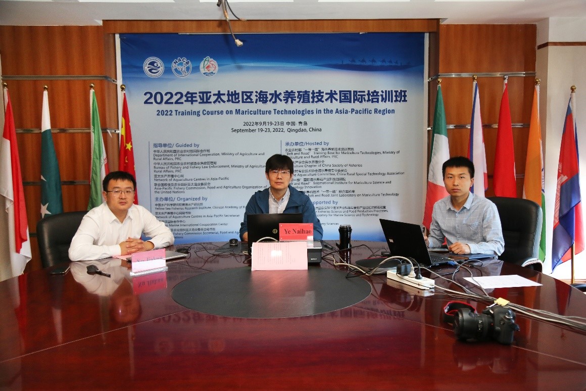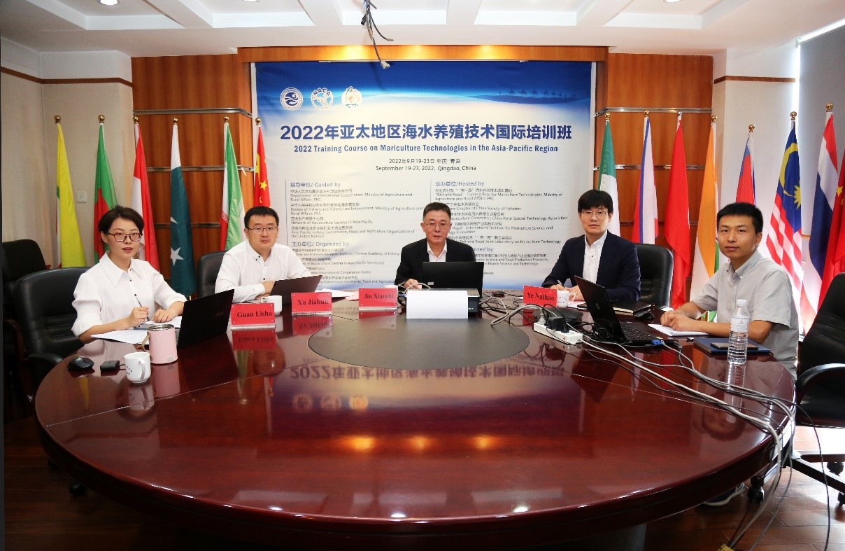 9月17日至23日,由中國水產科學研究院黃海水產研究所和亞太水產養殖中心網(NACA)秘書處、青島海洋國際合作中心、聯合國糧食及農業組織亞太漁業委員會秘書處共同主辦的2022年亞太地區海水養殖技術培訓班以“云課堂”方式成功舉辦。農業農村部漁業漁政管理局二級巡視員董金和,亞太水產養殖中心網總干事黃倢,中國水產學會理事長王清印,中國水產科學研究院黃海水產研究所所長金顯仕、副所長葉乃好,NACA秘書處、黃海水產研究所專家以及來自19個國家和地區涉漁國際組織和非政府組織的116名學員出席了開班儀式。開班儀式由葉乃好副所長主持。