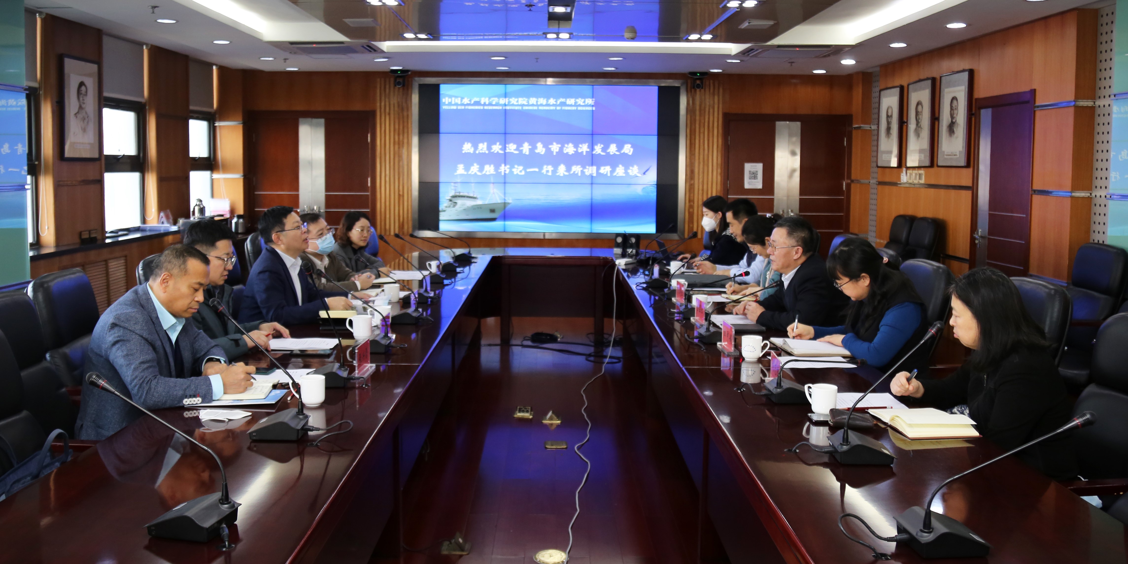 1月18日,青島市海洋發(fā)展局黨組書記、局長孟慶勝等一行5人到中國水產(chǎn)科學研究院黃海水產(chǎn)研究所調(diào)研交流。黃海水產(chǎn)研究所所長金顯仕及相關(guān)部門負責人接待了孟慶勝局長一行,并進行了座談交流。