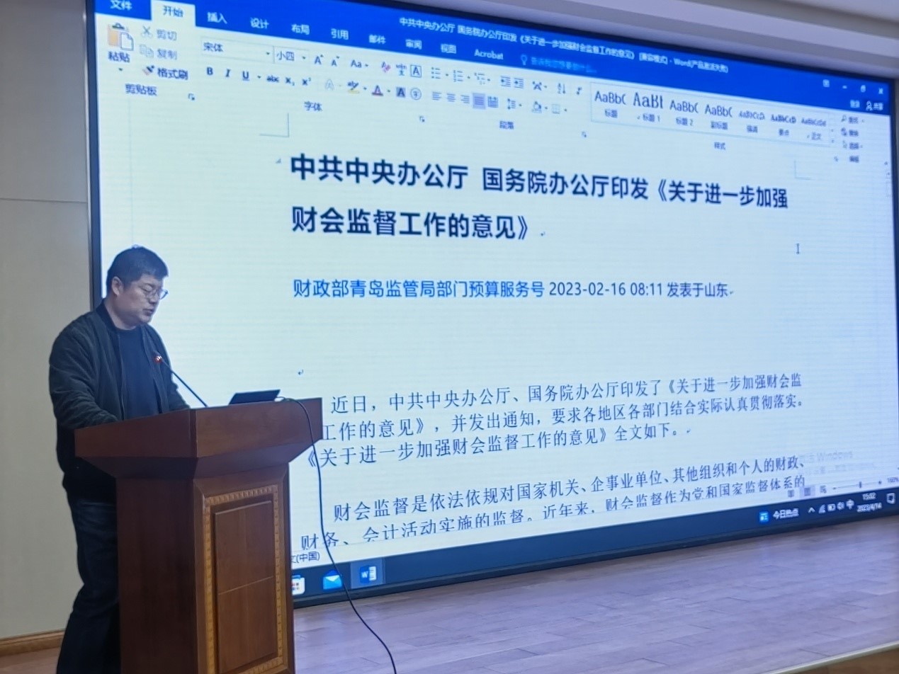 4月14日,中國水產科學研究院黃海水產研究所組織“加強財會監督工作”專題學習,資產管理、監審、財務人員以及各部門科研財務助理、報銷經辦人等30余人參加了會議,會議由財務處于津處長主持。
