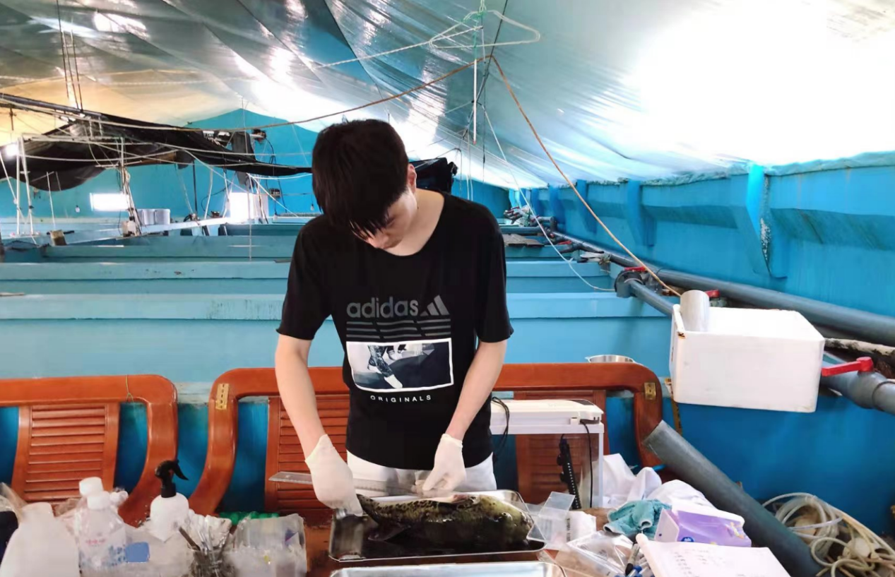 劉宇巖在養殖場開展現場調查任務