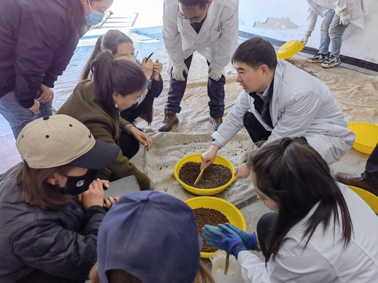 劉長琳進行餌料投喂技術指導