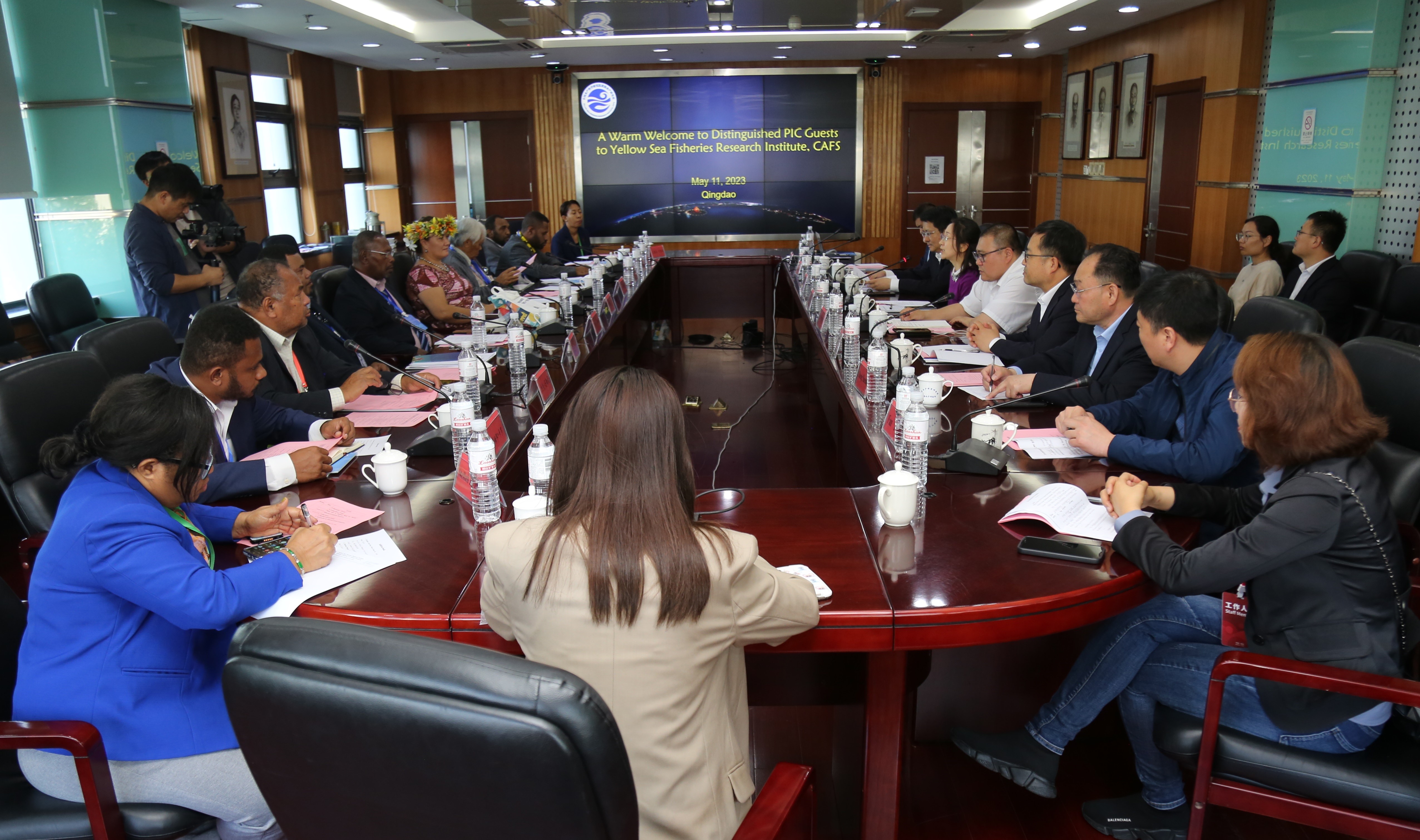 5月12日,所羅門群島漁業與海洋資源部部長內斯特?吉羅(Hon. Nestor Giro)、庫克群島農業部部長露絲?托吉-布朗(Hon. Rose Toki-Brown)、巴布亞新幾內亞國家漁業局國際漁業事務經理杰洛米?蒂歐提(Jerome Tioti)等太平洋島國漁業代表團一行11人在農業農村部漁業漁政管理局國合處處長于沛民、中國遠洋漁業協會常務副會長黃寶善、青島市市委副秘書長林鑌、青島市海洋發展局副局長戚永戰等陪同下到中國水產科學研究院黃海水產研究所訪問交流。黃海水產研究所所長金顯仕、所長助理單秀娟以及相關職能和科研部門負責人接待了代表團一行,并進行座談。
