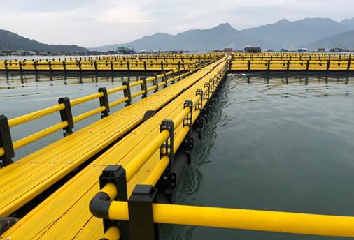 “新型綠色環(huán)保網(wǎng)箱養(yǎng)殖技術(shù)”針對(duì)福建省寧德地區(qū)傳統(tǒng)網(wǎng)箱養(yǎng)殖存在的設(shè)施簡(jiǎn)陋、抗風(fēng)浪能力差、漁排布放過密、養(yǎng)殖病害頻發(fā)、養(yǎng)殖效益下降等問題,采用HDPE環(huán)保材料,研發(fā)了“大套小”方形塑膠浮臺(tái)式網(wǎng)箱和HDPE“板材+環(huán)保浮球”式漁排。通過網(wǎng)箱設(shè)施海域布放方式與布放數(shù)量的優(yōu)化,達(dá)到提升產(chǎn)業(yè)形象,兼顧生態(tài)環(huán)保和綠色發(fā)展要求的目的。新設(shè)施的研發(fā)與新模式的構(gòu)建,不僅提高了養(yǎng)殖設(shè)施的抗風(fēng)浪能力,解決了傳統(tǒng)網(wǎng)箱養(yǎng)殖“白色污染”問題,同時(shí)也滿足了寧德地區(qū)養(yǎng)殖戶“漁排”式養(yǎng)殖操作習(xí)慣,有力支撐了寧德地區(qū)海上漁排養(yǎng)殖設(shè)施升級(jí)改造總體任務(wù)的實(shí)施。目前,寧德市蕉城區(qū)已累計(jì)完成傳統(tǒng)網(wǎng)箱升級(jí)改造近10萬口,面積約200萬平方米。昔日設(shè)施陳舊、布局過密、污染嚴(yán)重的網(wǎng)箱養(yǎng)殖區(qū)現(xiàn)今已換新顏,成為了海上一道亮麗的風(fēng)景。