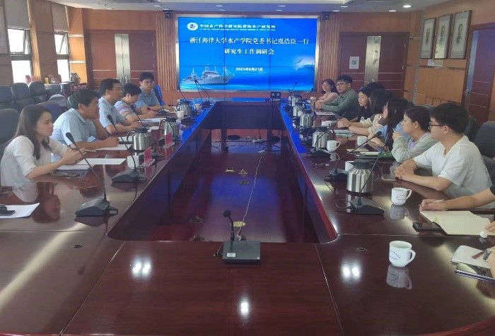 6月21日,浙江海洋大學水產學院黨委書記虞浩臣,紀委書記、副院長徐娜娜等一行5人到中國水產科學研究院黃海水產研究所開展聯合培養研究生工作調研。黃海水產研究所副所長葉乃好接待了調研組一行,相關職能部門負責人、研究生導師及聯合培養研究生代表等30余人參加了調研座談。