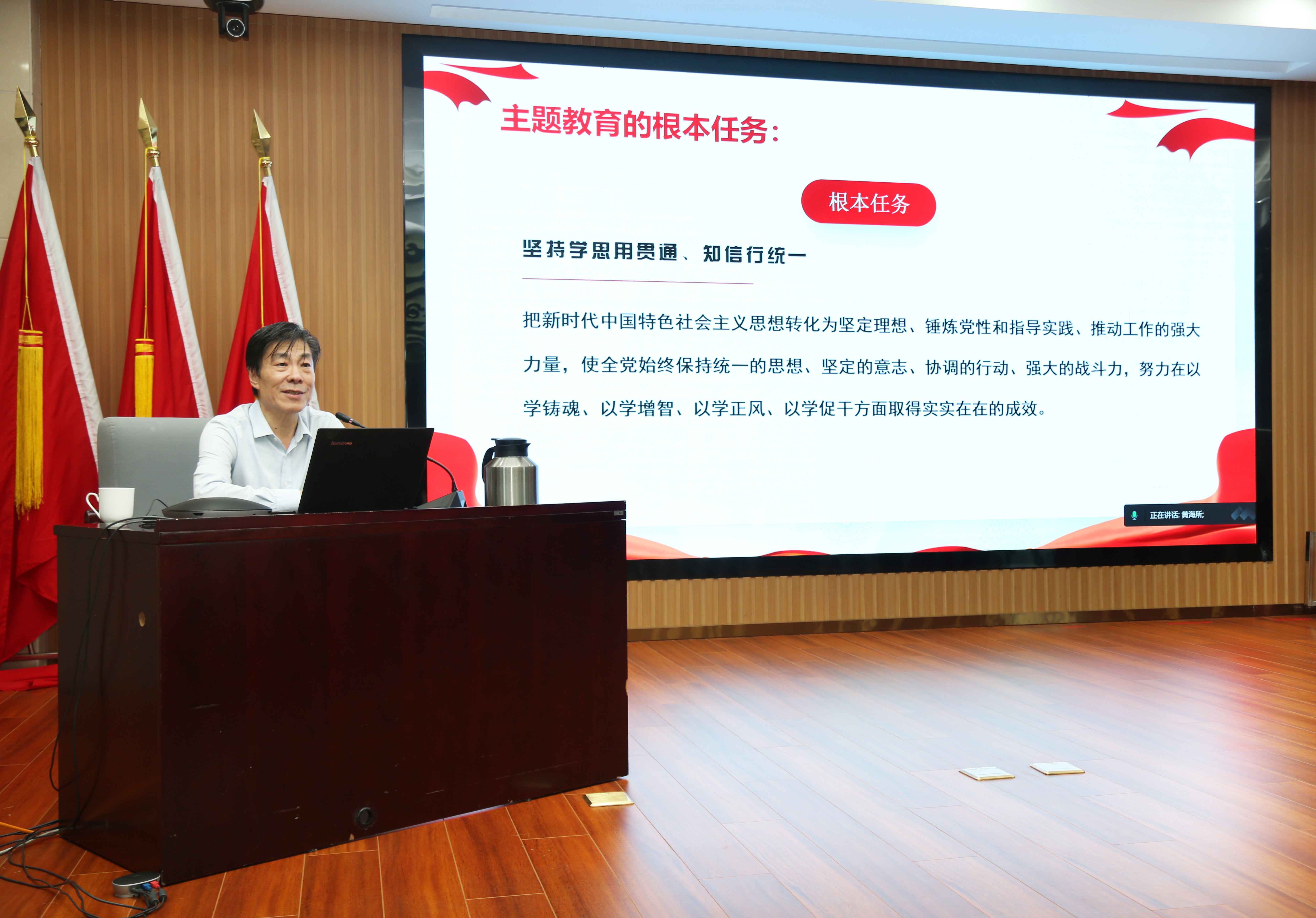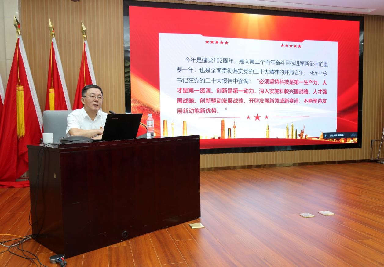 7月3日,按照學習貫徹習近平新時代中國特色社會主義思想主題教育工作安排,中國水產科學研究院黃海水產研究所組織開展了“真學篤行強黨性 實干擔當建新功”專題黨課。院主題教育第一巡回指導組全體成員線上出席。全所中層以上領導干部、在職黨員、研究生黨員、離退休黨員代表及黨外知識分子代表等200余人參加了黨課。黨課由副所長榮小軍主持。