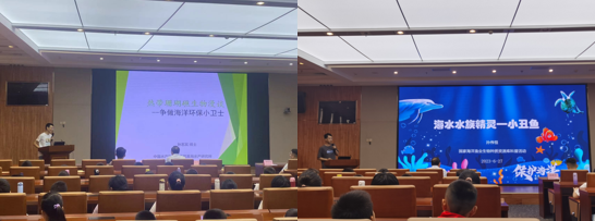黃海水產研究所“海水魚類養殖科普工作室”孫志賓博士和孫偉恒碩士分別為大家做“大菱鲆一條有故事的魚”“熱帶珊瑚礁生物漫談—爭做海洋環保的小衛士”和“海水水族精靈—小丑魚”的科普講座,深入淺出地為學生們介紹了豐富多彩的海洋生物、海洋環境保護和海水魚健康養殖等相關知識。