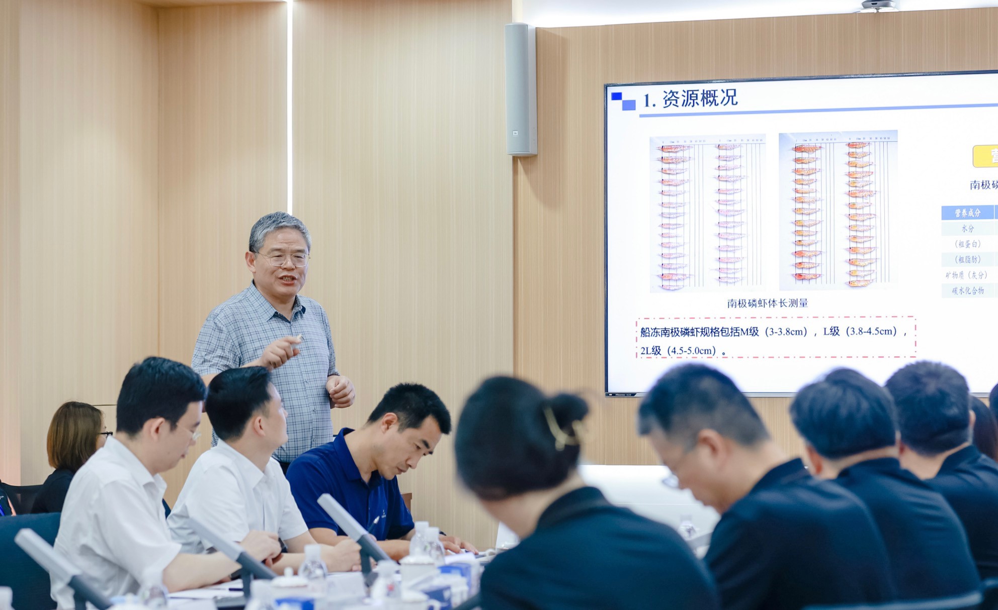 農業農村部極地漁業可持續利用重點實驗室副主任冷凱良代表調研組介紹了黃海水產研究所在南極磷蝦資源評估與養護管理、南極磷蝦陸基高值利用與質量安全檢測方法和標準等方面的研究成果。