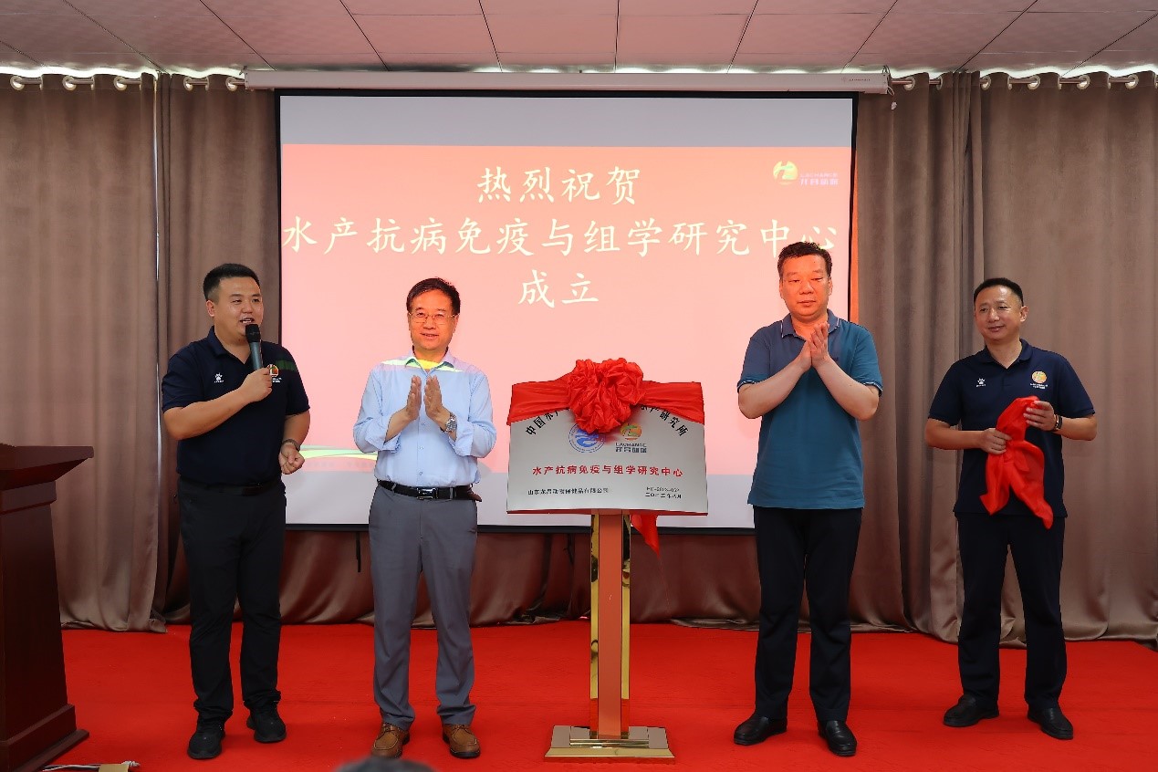 8月4日,中國水產科學研究院黃海水產研究所與山東龍昌動物保健品有限公司聯合共建的“水產抗病免疫與組學研究中心”(以下簡稱“中心”)在山東德州齊河縣正式揭牌運行?!爸行摹敝荚诮㈤_放協同、大成集智的新型研究組織,匯集多方力量、聚焦重點問題,為水產抗病免疫與組學在研究探索中遇到的新情況、新問題提出高質量的解決方案。
