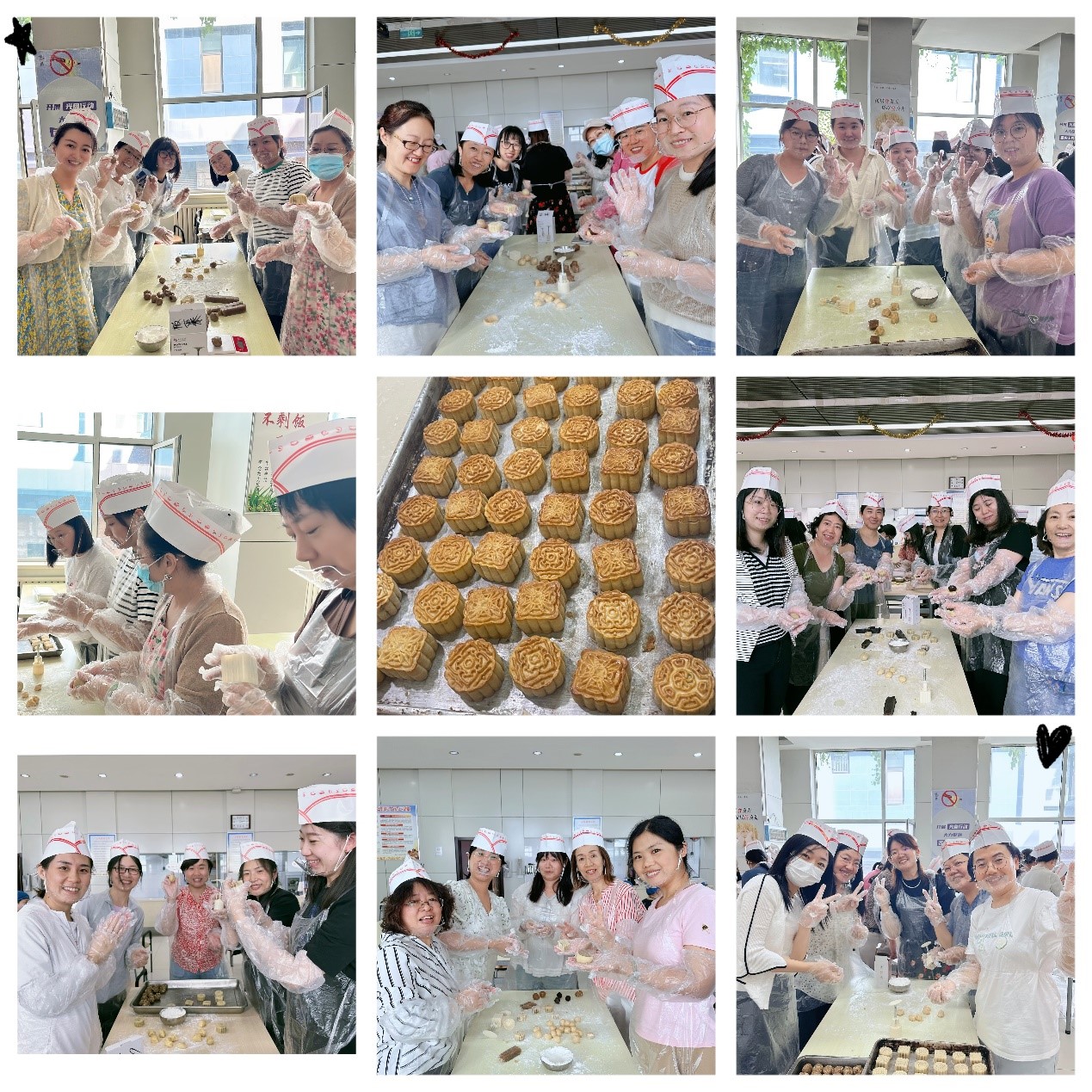 活動中,食堂面點師傅介紹了月餅的制作方法和注意事項后,大家幾人一組,分工合作,搓面團、做餅皮、包餡料、壓模印……,有條不紊制作月餅。雖然大部分職工、學生都是第一次動手做月餅,但“作品”卻都有模有樣,大家還時不時相互交流,現場氣氛和諧融洽。