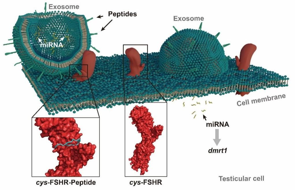 構建基于工程化外泌體的miRNA遞送系統,通過靶向半滑舌鰨精巢支持細胞表面特異性受體FSHR,高效調控半滑舌鰨性別決定基因dmrt1,影響精子發生和精巢形態功能