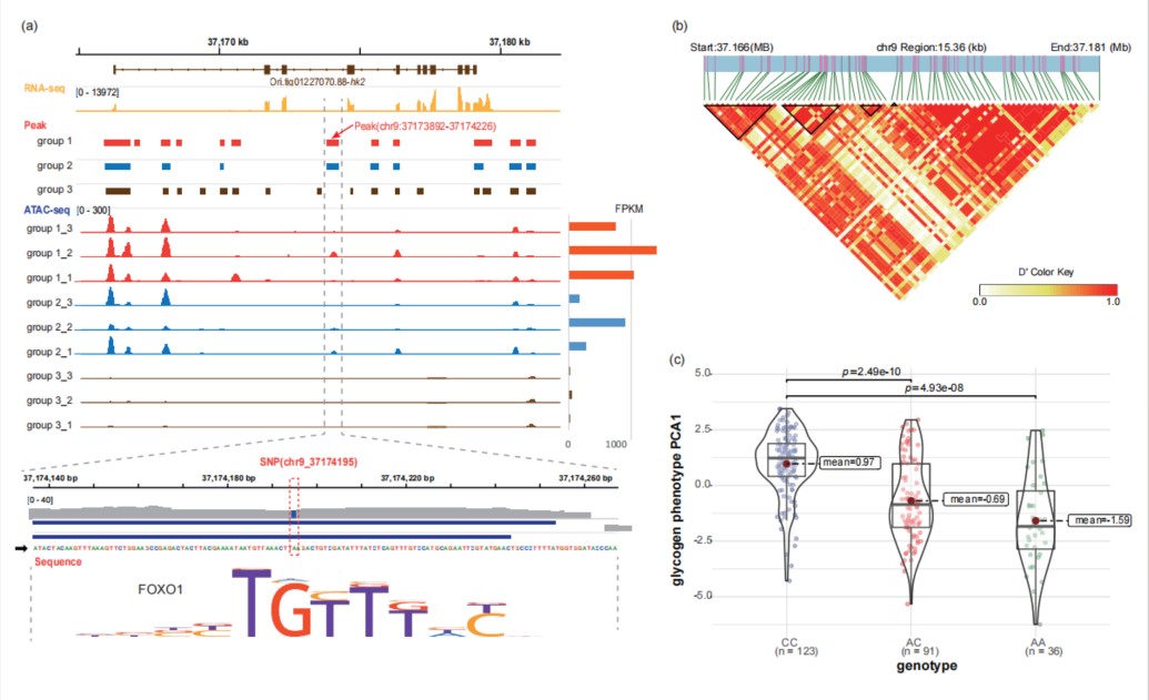 黃海水產研究所海水貝類種質創制與利用創新團隊在構建近江牡蠣基因組精細圖譜的基礎上,聯合全基因組關聯分析(GWAS)、轉錄組測序(RNA-seq)分析和染色質可及性測序(ATAC-seq)分析等多種技術方法,篩查定位到63個與糖原代謝相關的候選基因;轉錄組與代謝組聯合分析查明高糖原組性腺組織中糖原分解、糖酵解和三羧酸循環(TCA)過程高度活躍,而與糖異生相關基因PEPCK和FBP1在低糖原組高表達;原位雜交、qRT-PCR技術明確了GS、GS3β基因在近江牡蠣外套膜、鰓、閉殼肌、肝胰腺、唇瓣、性腺等組織的時空表達規律,并通過RNA干擾等技術證明了近江牡蠣閉殼肌和肝胰腺中GS3β基因對GS表達的調控作用。以上研究為進一步解析近江牡蠣糖原代謝機制奠定了基礎,同時為培育高品質牡蠣新品種提供了科學依據和技術支撐。相關成果發表在國際知名期刊Zoological Research和Fishes。