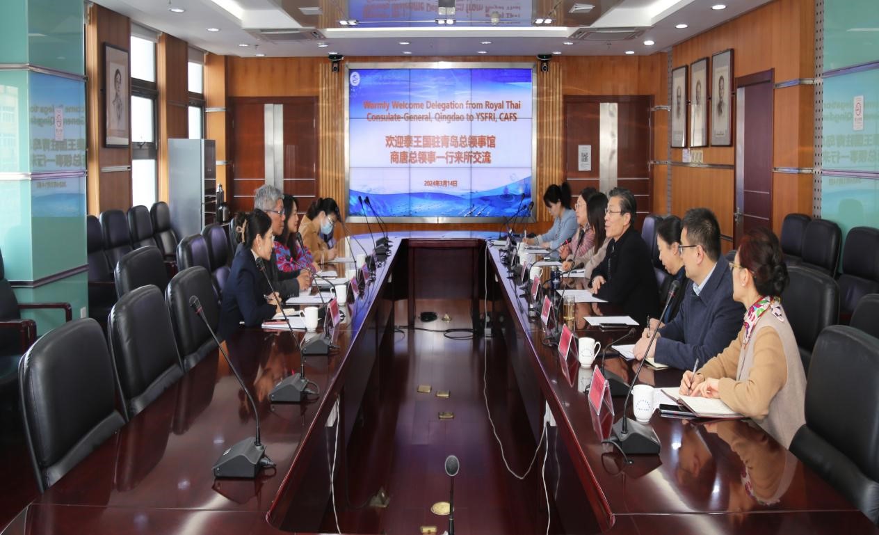 3月14日,泰王國駐青島總領事館Sata Arayakul總領事等一行4人到中國水產科學研究院黃海水產研究所訪問交流。黃海水產研究所黨委書記趙憲勇及相關部門負責人與專家接待了Sata Arayakul總領事一行,并進行了座談。