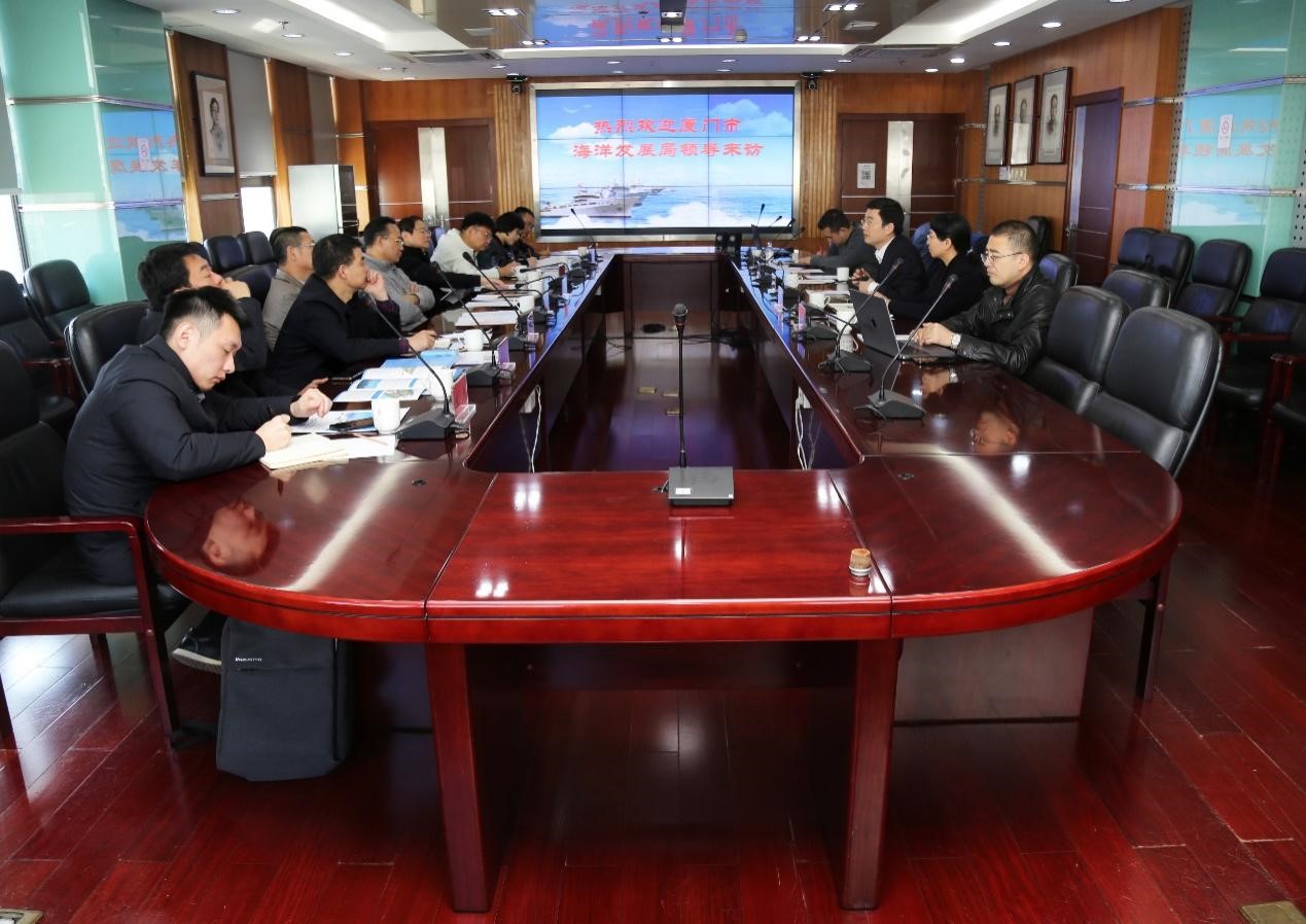 3月20日,廈門市海洋發展局黨組書記、局長曾東生,廈門大學海洋與地球學院教授柯才煥,廈門市海洋與漁業研究所技術示范室主任陳建春及多家企業負責人到中國水產科學研究院黃海水產研究所調研交流,黃海水產研究所副所長榮小軍及相關專家接待了曾東生局長一行,并進行了座談。