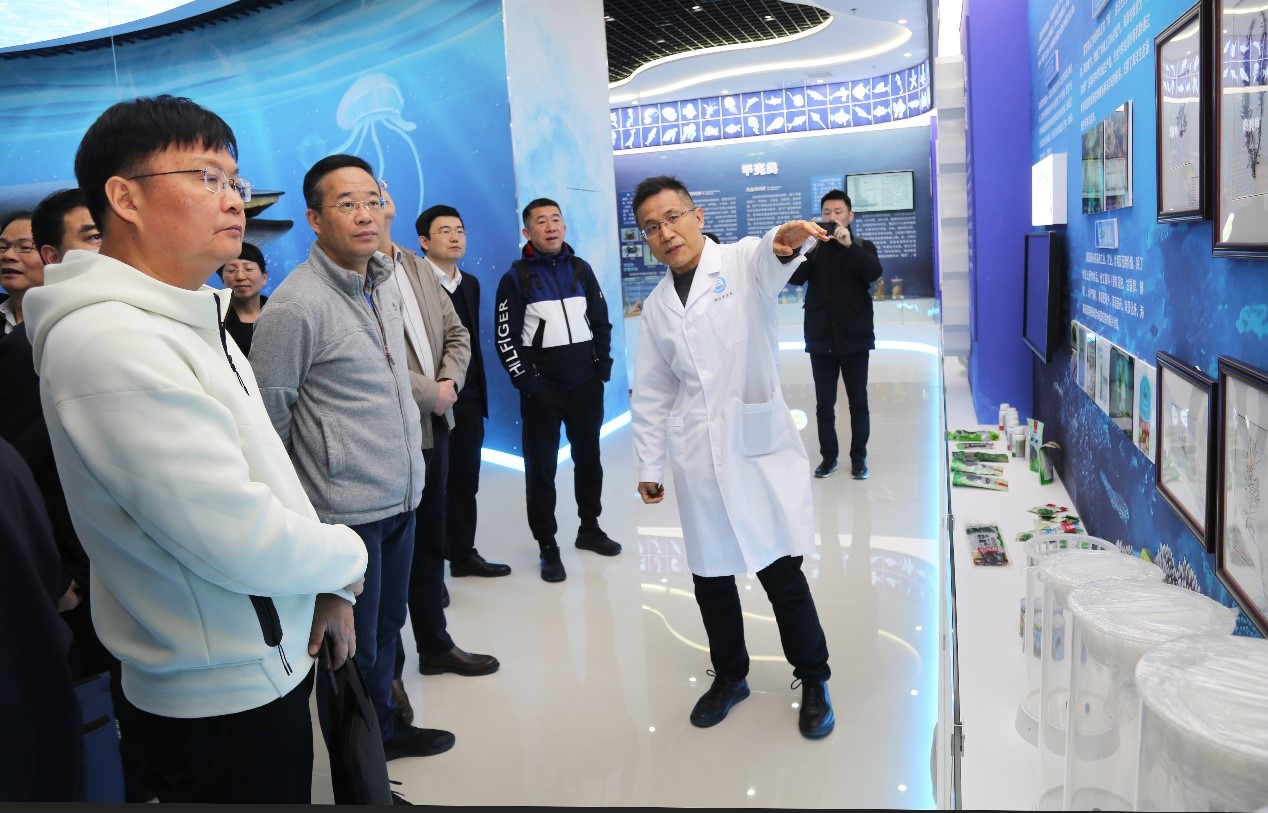 曾東生局長一行還實地參觀調研了國家海洋漁業生物種質資源庫。青島藍色糧倉海洋漁業發展有限公司董事長雷東陪同調研。