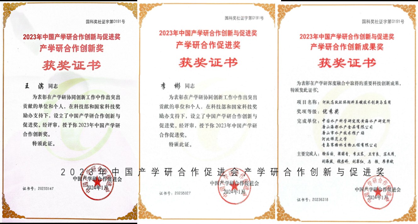 日前,中國產學研合作促進會公布獲獎通知,中國水產科學研究院黃海水產研究所王濱副研究員榮獲中國產學研合作創新獎(個人獎)、李彬副研究員榮獲中國產學研合作促進獎(個人獎)、徐后國研究員主持完成的“河鲀高效環保飼料關鍵技術創新與應用”項目榮獲中國產學研合作創新成果優秀獎。