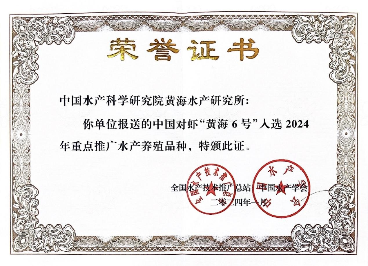 同時,黃海水產研究所作為第二完成單位聯合培育的羅氏沼蝦“南太湖3號”“數豐1號”等2個水產新品種,也成功入選了全國水產技術推廣總站、中國水產學會2024年重點推廣水產養殖品種。孔杰研究員團隊通過開展科技支撐、協同創新、聯合育種等相關工作,為產業提供了多個蝦類養殖良種,對支撐產業健康可持續發展具有重要意義。