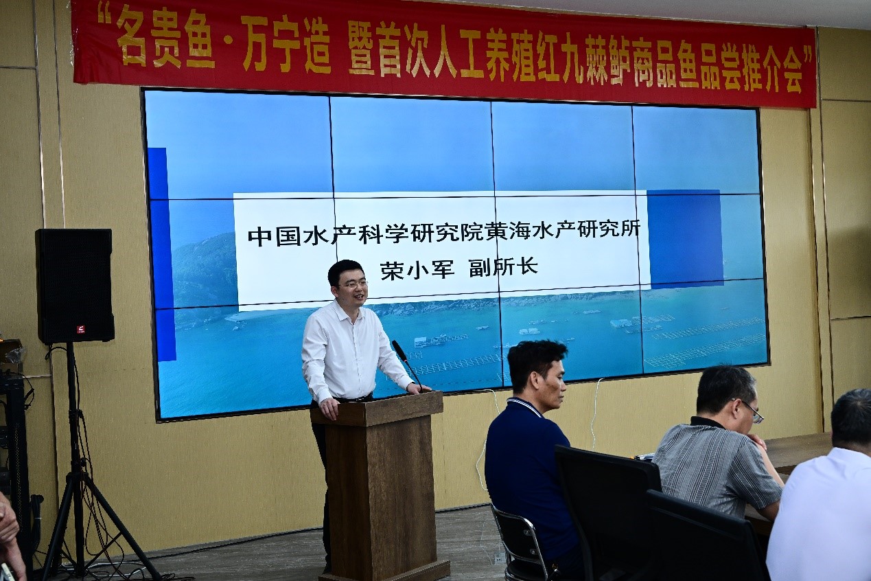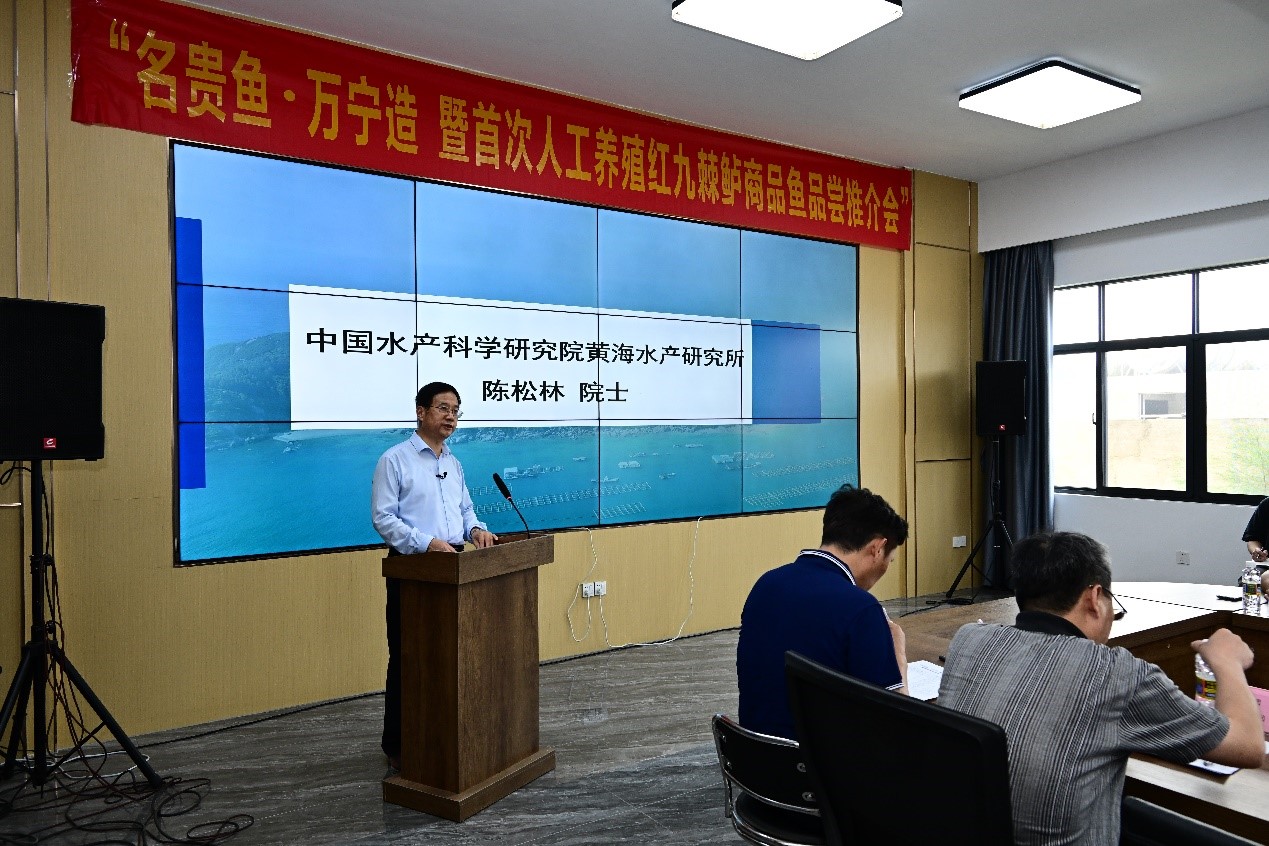4月8日,中國水產(chǎn)科學(xué)研究院黃海水產(chǎn)研究所牽頭組織的“名貴魚?萬寧造 暨首次人工養(yǎng)殖紅九棘鱸商品魚品嘗推介會”在海南萬寧林蘭水產(chǎn)養(yǎng)殖有限公司召開。中國工程院院士陳松林,黃海水產(chǎn)研究所副所長榮小軍,海南省農(nóng)業(yè)農(nóng)村廳廳長何瓊妹,海南省科學(xué)技術(shù)廳副廳長蒙巍,萬寧市市長王三防以及海南省海洋漁業(yè)科學(xué)院、海南大學(xué)和海南熱帶海洋學(xué)院等單位的有關(guān)專家出席了推介會。