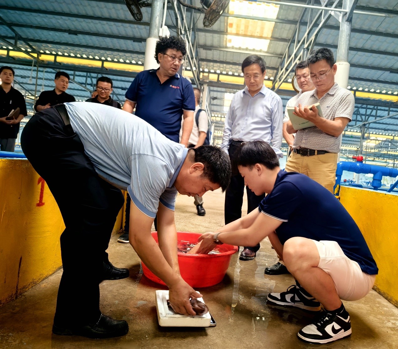 專家組對紅瓜子斑商品魚進行現(xiàn)場測量
