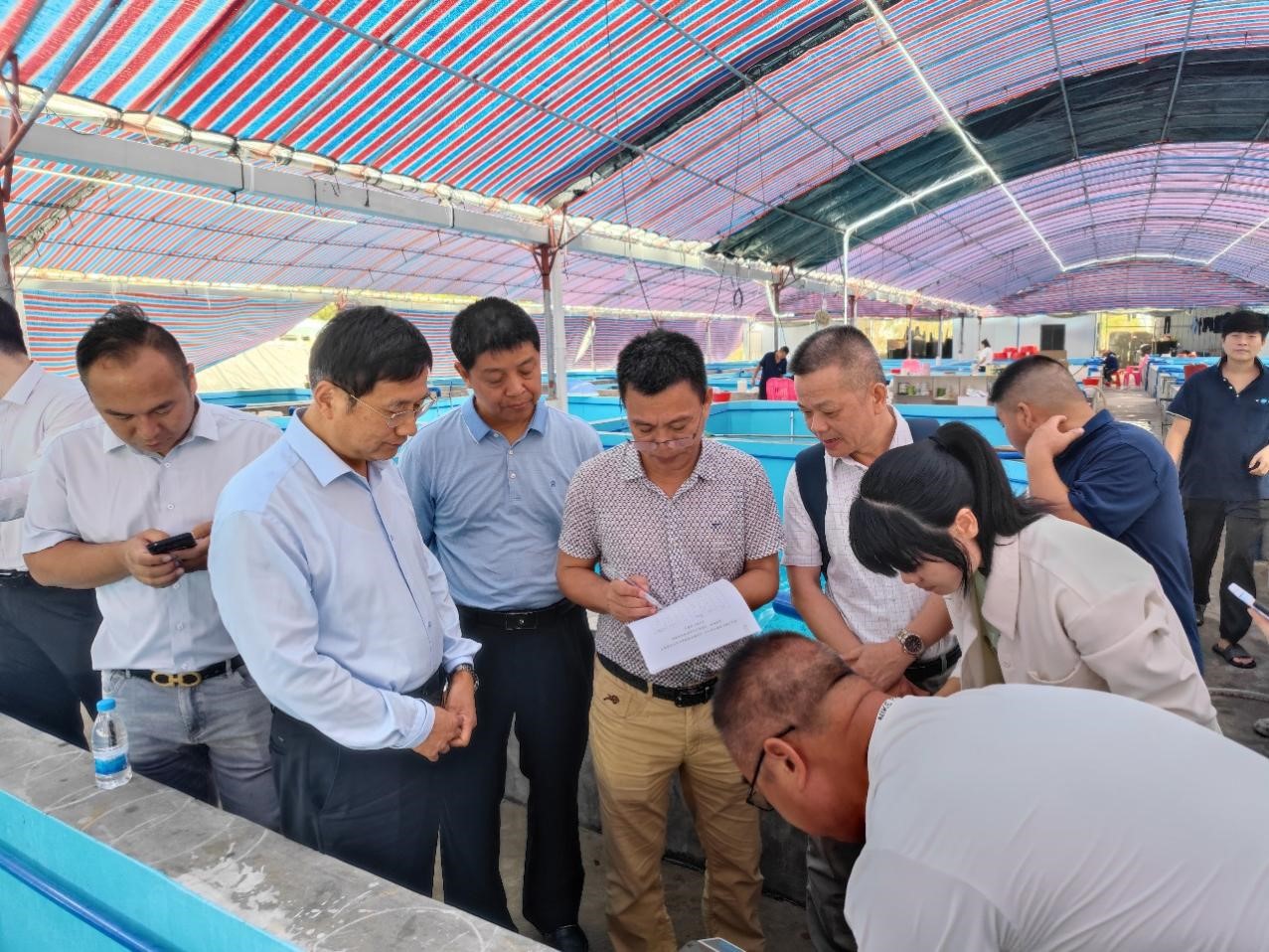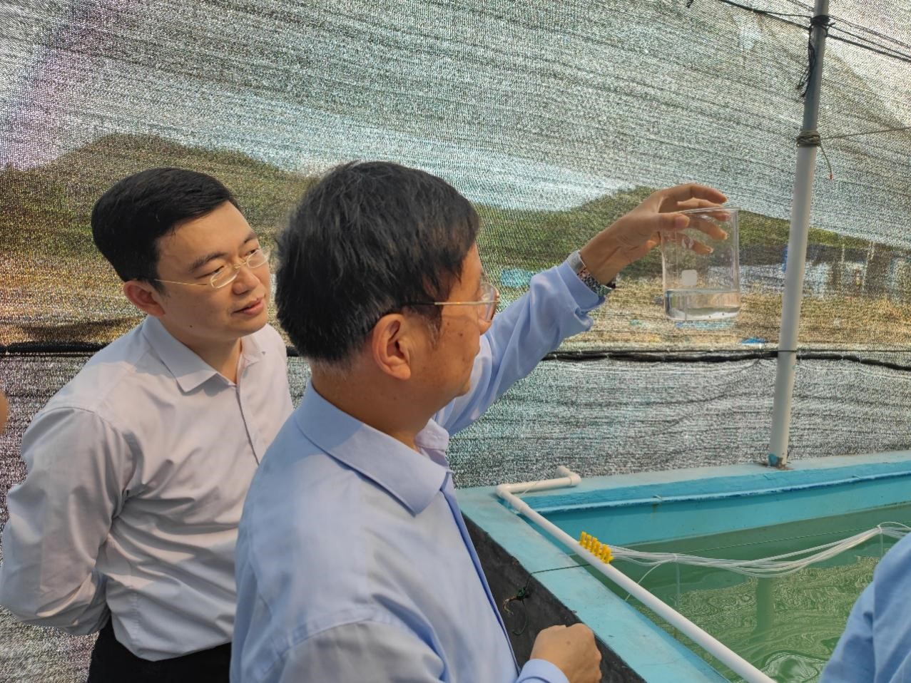 陳松林院士觀察全室內工廠化繁育紅九棘鱸魚苗