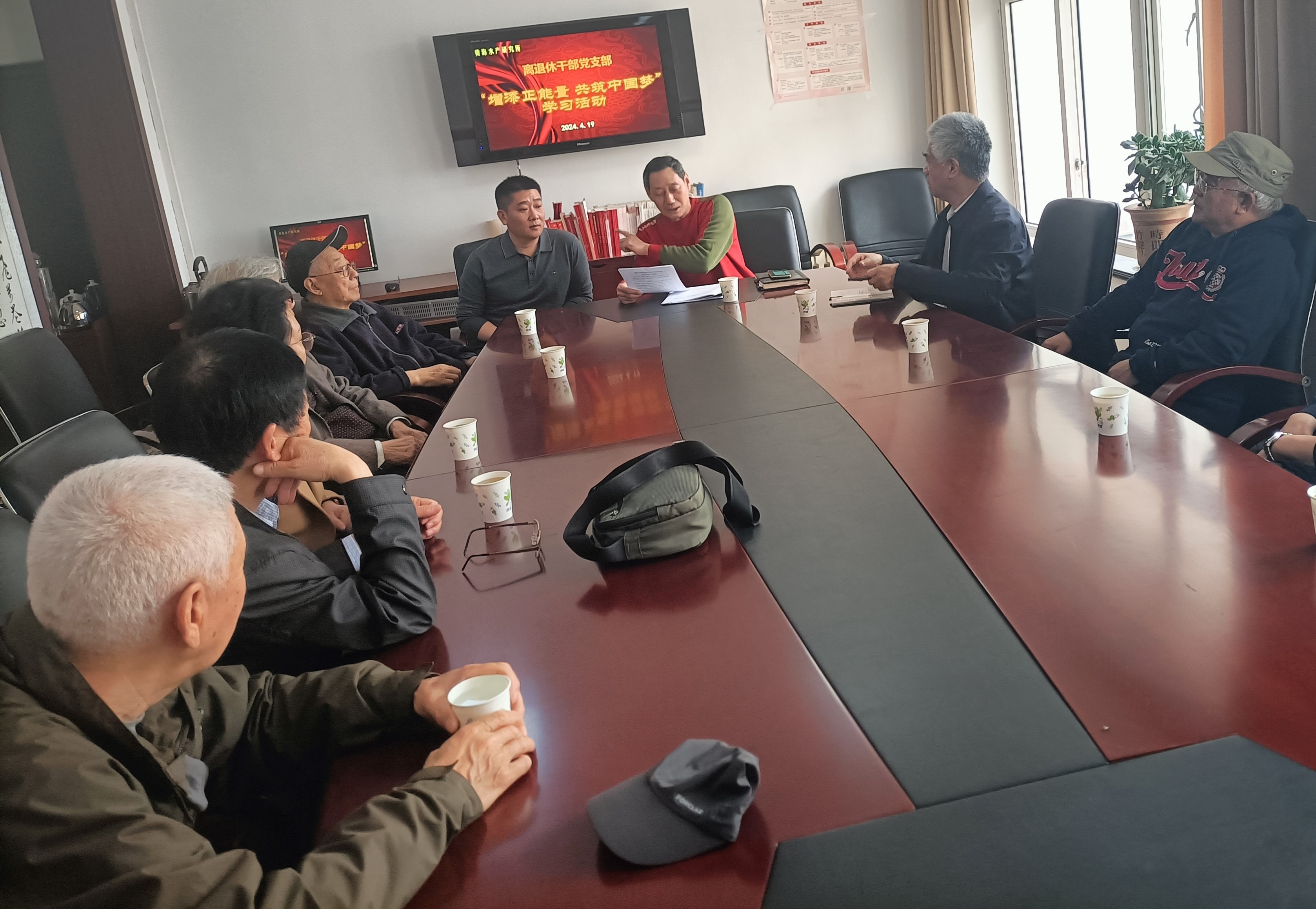 4月19日,中國水產科學研究院黃海水產研究所離退休黨總支開展“增添正能量·共筑中國夢”集中學習活動,離退休黨總支及各支部委員、老黨員代表參加學習。