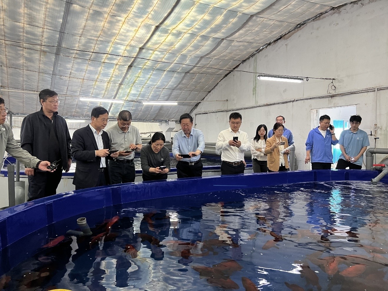 專家現場查看紅瓜子斑親魚種質庫