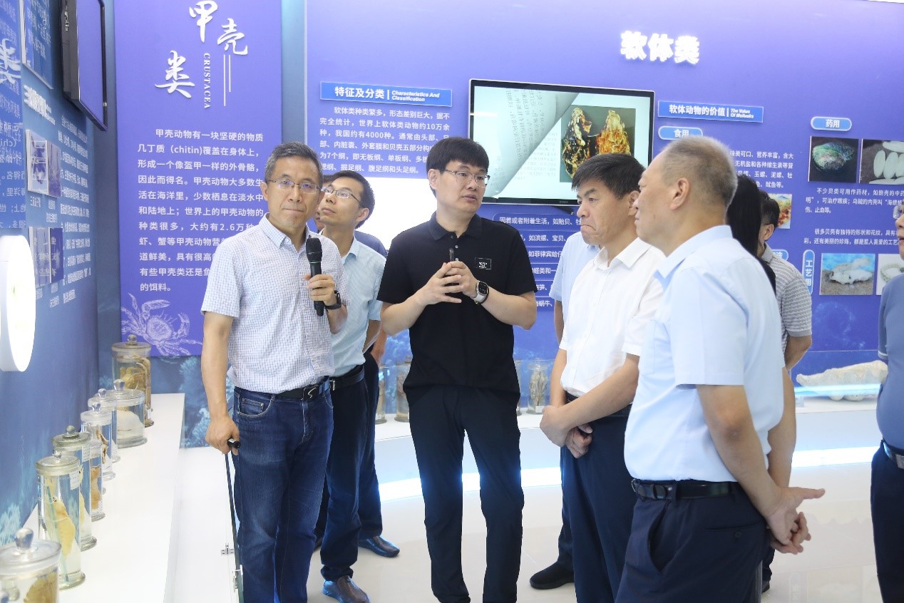 在國家海洋漁業生物種質資源庫,葉乃好副所長介紹了黃海所研究領域、科研成果、人才培養和產業支撐等方面的基本情況,并圍繞加快培育新質生產力、推進漁業現代化建設,詳細介紹了黃海所緊跟世界海洋科技發展大勢,著眼國家海洋漁業發展需求,聚焦海洋領域“卡脖子”關鍵核心技術,深入踐行大食物觀、大農業觀的具體舉措。