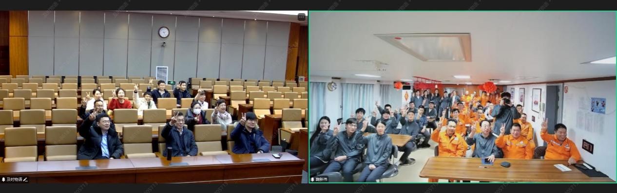 1月26日,中國水產科學研究院黃海水產研究所黨委書記趙憲勇,副所長葉乃好、榮小軍及相關部門負責人通過衛星視頻連線,與正在執行中西印度洋公海漁業資源調查任務的“藍海101”號調查船視頻連線,向全體工作人員致以新春祝福。
