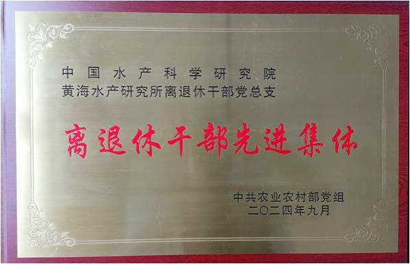 黃海所離退休干部黨支部成立于1985年,1999年12月擴建為設有3個黨支部的離退休黨總支,發展到現在已有4個黨支部。2004年至2024年期間黃海所離退休干部黨總支連續5屆榮獲農業農村部“離退休干部先進集體”榮譽稱號,2002年至2009年榮獲青島市“先進離退休干部黨總支”和“老干部工作先進單位”,2006年、2010年榮獲青島市“先進離退休干部黨員活動室”,2011年榮獲青島市“‘五好’離退休干部黨支部”和“關心下一代先進集體”,2019年獲評“青島市離退休干部示范黨支部”。