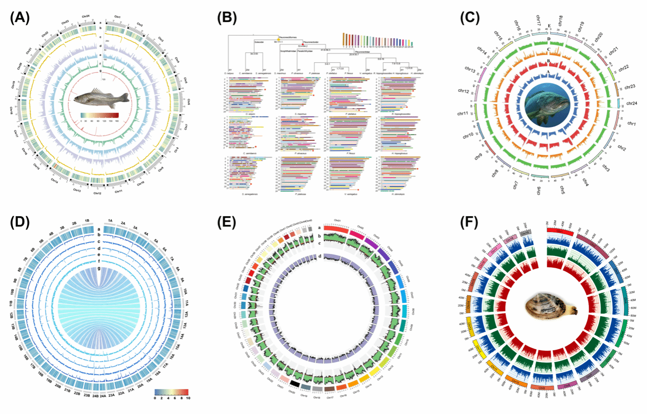海水魚類基因組學及分子育種技術創(chuàng)新團隊、海洋漁業(yè)生物遺傳資源評價與合成利用創(chuàng)新團隊、海水貝類種質創(chuàng)制與利用創(chuàng)新團隊、海水池塘生態(tài)工程化養(yǎng)殖創(chuàng)新團隊、漁業(yè)資源分子生態(tài)學團隊等研究利用ONT ultra-long、PacBio HiFi和Hi-C測序數(shù)據(jù),繪制了我國首個海水魚類(花鱸)以及鞍帶石斑魚、紅九棘鱸和星突江鰈端粒到端粒(T2T)的高質量參考基因組,繪制了脊尾白蝦、菲律賓蛤仔和七星底燈魚染色體水平的基因組;發(fā)現(xiàn)了鰈形目魚類共享性染色體祖先核型,精確鑒定了星突江鰈性染色體和性別決定候選基因gsdf;解析了脊尾白蝦鹽堿脅迫適應機制;闡釋了灘涂貝類適應埋棲生活的形態(tài)進化和分子機理;構建的首個染色體水平的燈籠魚基因組,為黃東海域七星底燈魚隱存種的存在提供了生態(tài)基因組學證據(jù),闡明了七星底燈魚適應晝夜垂直移動的遺傳基礎。研究成果發(fā)表在Scientific Data、Zoological Research、Biology-Basel等刊物上。