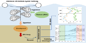 黃海所近海生態(tài)養(yǎng)殖創(chuàng)新團隊以我國北方典型規(guī)?;B(yǎng)殖海灣——桑溝灣為研究區(qū)域,通過室內可控實驗、原位觀測和模型模擬等手段,明確了桑溝灣養(yǎng)殖系統(tǒng)硅元素源、匯清單及儲量特征,揭示了養(yǎng)殖貝類生物沉積在硅遷移轉化過程中的重要作用;進一步反演了生物硅(BSi)沉積通量年際動態(tài)變化,解析了近40余年沉積物BSi垂向分布及其對牡蠣養(yǎng)殖產(chǎn)業(yè)發(fā)展的響應;秉承“廢棄物資源化利用”理念,以廢棄稻殼衍生的稻殼灰(RHA)為硅元素補充介質,評估了RHA對促進養(yǎng)殖系統(tǒng)硅藻生長的助益作用及其緩解季節(jié)性硅酸鹽限制的潛力。該研究可為后續(xù)研發(fā)養(yǎng)殖容量提升技術、深入解析養(yǎng)殖系統(tǒng)硅-碳耦合增匯機制提供理論依據(jù)和數(shù)據(jù)支撐。研究成果發(fā)表于國際知名期刊Aquaculture、Frontiers in Marine Science等。