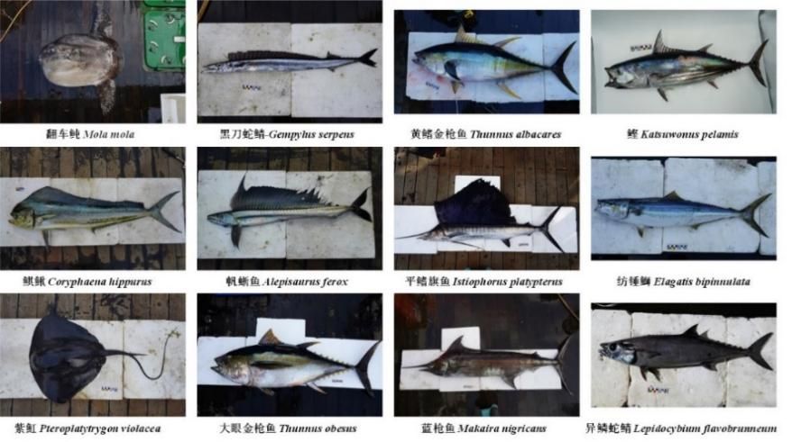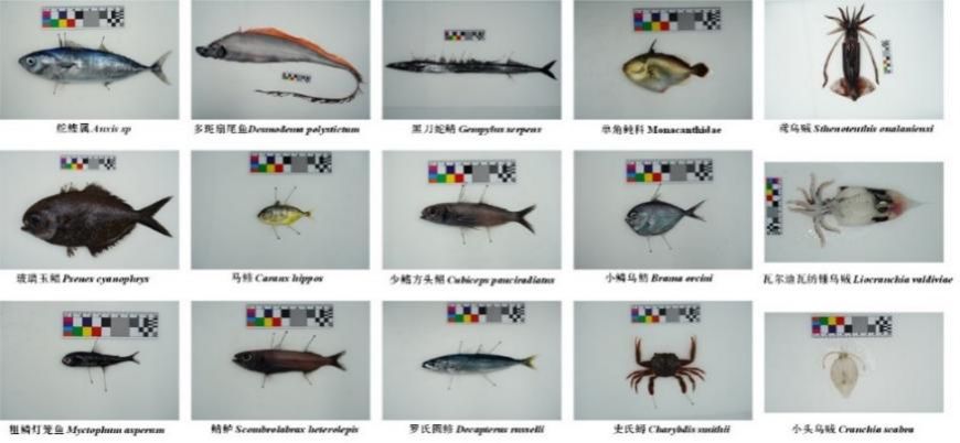 本次調查包括中上層拖網(wǎng)、延繩釣、魷魚釣等多種作業(yè)方式,采集到100余種漁業(yè)生物,主要包括鳶烏賊、少鰭方頭鯧、燈籠魚、大目金槍魚、黃鰭金槍魚、劍魚、帆蜥魚和紫魟等。燈籠魚科、圓鯧科、柔魚科、鲹科、鯖科和蛇鯖科是主要中層及中上層魚類資源,其中柔魚科資源占絕對優(yōu)勢;燈籠魚科資源主要分布在馬爾代夫西部公海海域,而其他魚類資源在索馬里東南部公海存在高密度分布區(qū)。此次調查采集了2000米深水水樣,獲取了魚卵、仔稚魚、浮游生物、環(huán)境DNA、微塑料和常規(guī)水文樣品等1萬余份,保存了珍貴漁業(yè)生物標本300余份,以及水文、氣象、聲學數(shù)據(jù)等超過2TB,系統(tǒng)分析了中西印度洋漁場的生態(tài)學基礎。