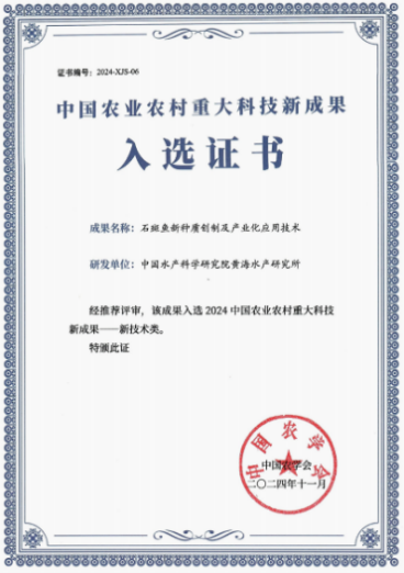 入選中國水產(chǎn)科學研究院科研重大進展3項