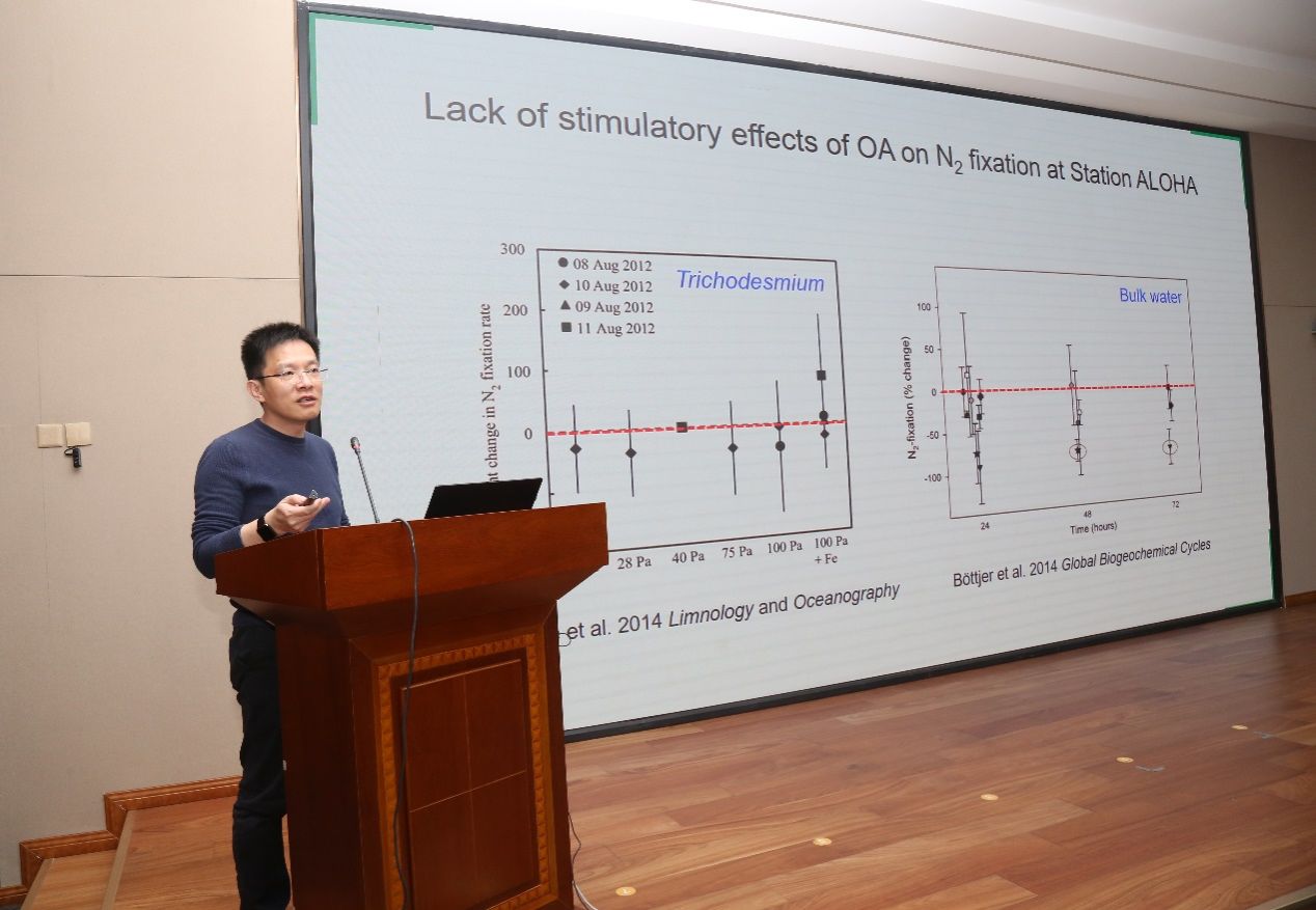 史大林教授作了題為“Nutrient regulation of biological nitrogen fixation in present and future oceans”的學術報告,系統闡述了當前和未來海洋中營養元素對生物固氮作用的調控機制,深入探討了海洋生物固氮在全球碳氮循環中的重要作用,并分析了全球氣候變化背景下海洋生物固氮過程的變化趨勢。