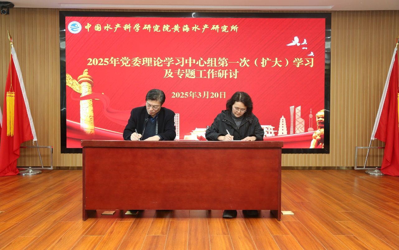 3月20日至21日,中國水產科學研究院黃海水產研究所結合所務會召開2025年黨委理論學習中心組第一次(擴大)學習及專題工作研討。黃海所黨委委員、各支部書記以及各部門、各基地負責人參加了學習,學習由紀委書記、副所長榮小軍主持。