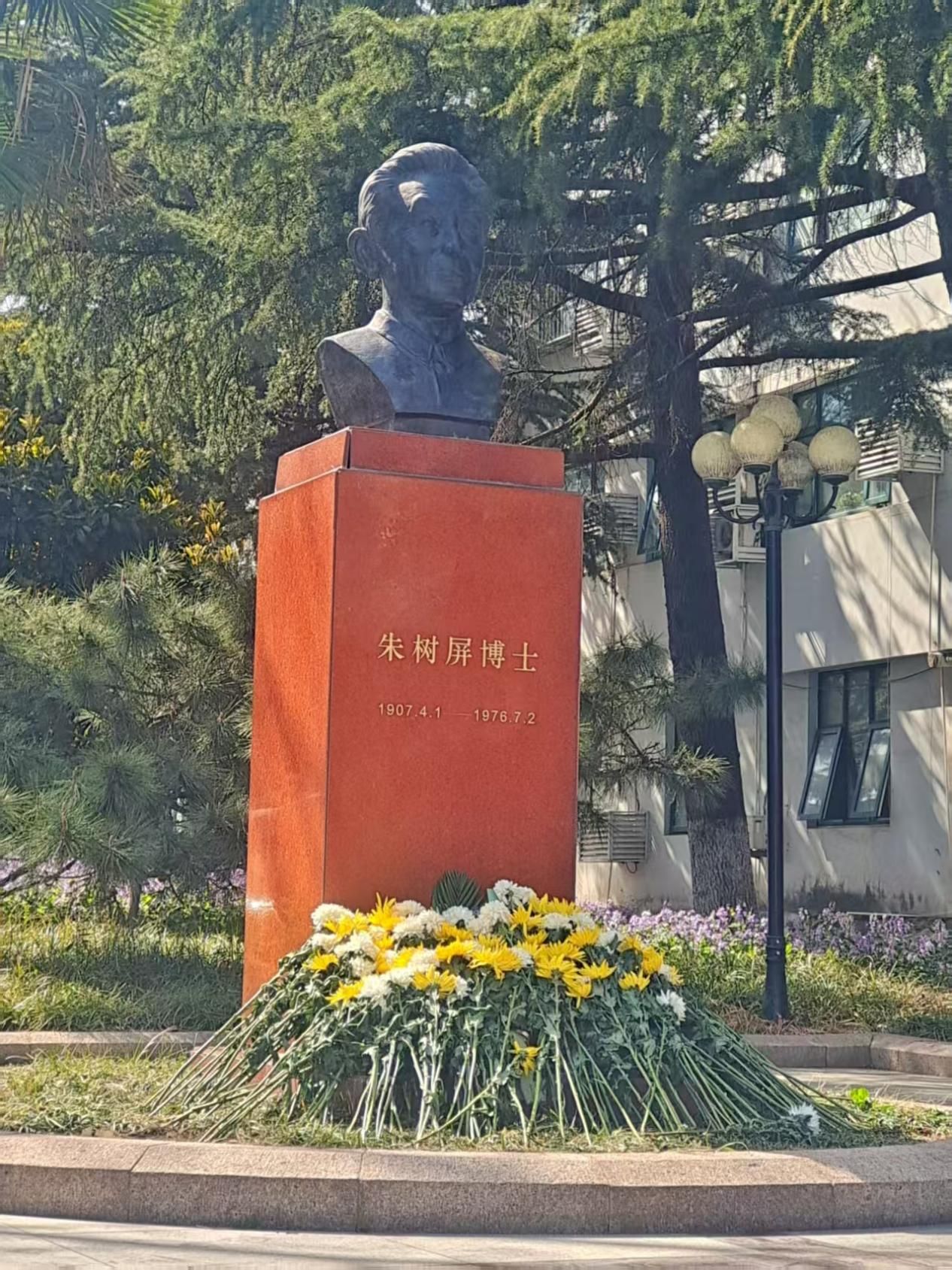 緬懷活動在朱樹屏先生雕像前進行。全體人員一起追思朱樹屏先生事跡,集體默哀3分鐘,向以朱樹屏先生為代表的黃海所老一輩科學家們致以深切的哀悼和崇高的敬意,并敬獻鮮花。