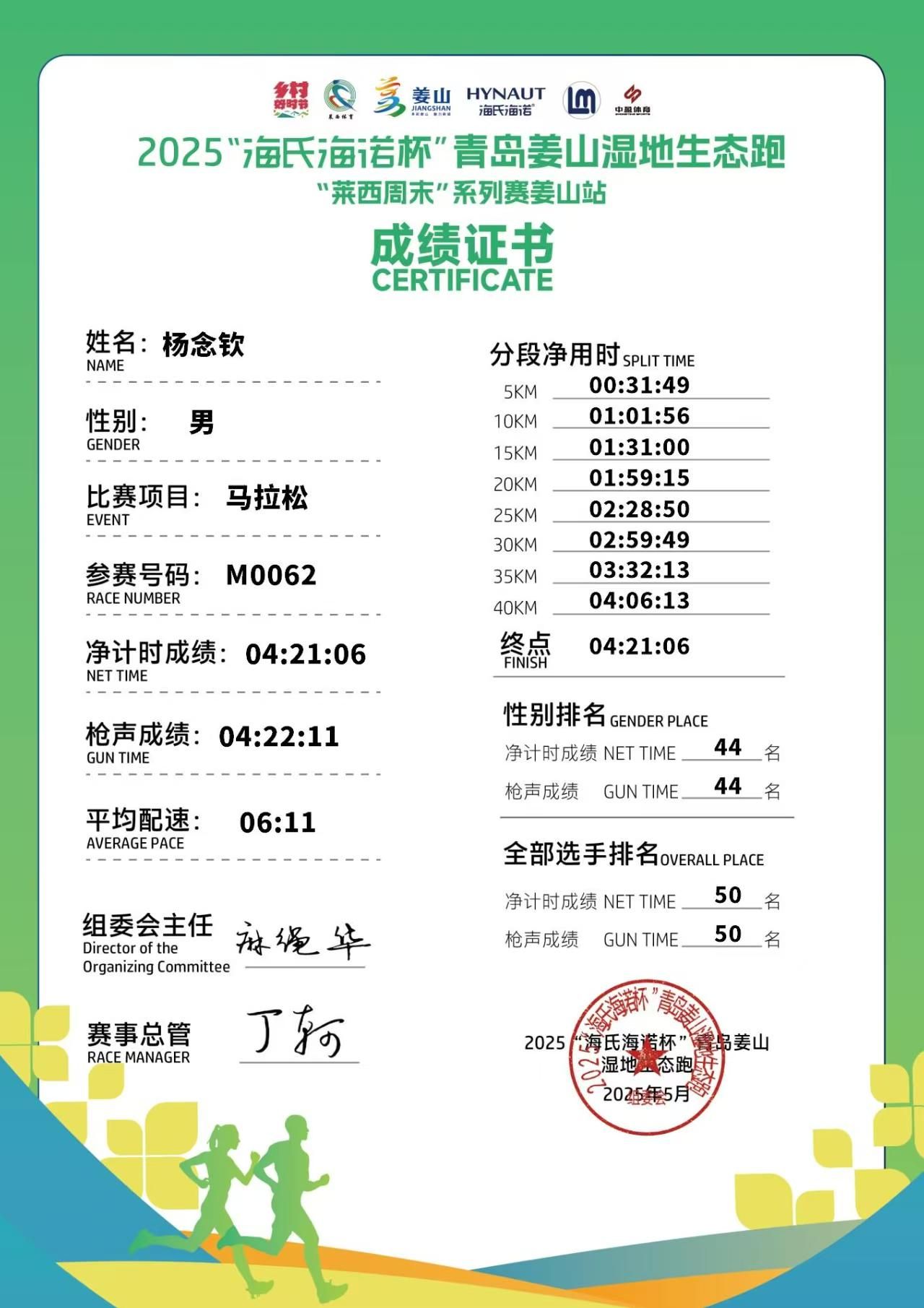 黃海所跑團(tuán)共有7名隊(duì)員參加比賽,2人參加全程馬拉松,5人參加半程馬拉松。參賽隊(duì)員們個(gè)個(gè)精神煥發(fā)、士氣高昂,在賽道上奮勇拼搏、勇往直前,用腳步丈量濕地生態(tài)之美,用激情點(diǎn)燃運(yùn)動(dòng)活力。史前、楊念欽分別取得全程馬拉松第12、50名的好成績(jī),其他隊(duì)員均安全完賽。