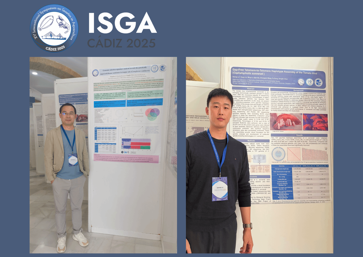 另外,黃海所李仰真副研究員和盧昇助理研究員分別以“Genomic Selection Signature Analysis Reveals the Genetically Improved Disease Resistance in Tongue Sole (Cynoglossussemilaevis)”和“Gap-Free Telomere-to-Telomere Haplotype Assembly of the Tomato Hind (Cephalopholissonnerati)and Its Applications”為題進(jìn)行了墻報(bào)展示,展示了黃海所在魚類抗病良種選育、新養(yǎng)殖對(duì)象開發(fā)以及高質(zhì)量基因組精細(xì)圖譜繪制方面的最新進(jìn)展。
