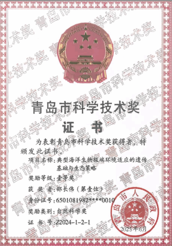 近日,青島市召開全市科技創(chuàng)新大會, 會上 宣讀了《青島市人民政府關(guān)于2024年度青島市科學(xué)技術(shù)獎勵的決定》。中國水產(chǎn)科學(xué)研究院黃海水產(chǎn)研究所副所長邵長偉研究員團隊領(lǐng)銜,聯(lián)合中國科學(xué)院海洋研究所、青島華大基因研究院共同完成的“典型海洋生物極端環(huán)境適應(yīng)的遺傳基礎(chǔ)與生態(tài)策略”研究成果榮獲青島市自然科學(xué)獎一等獎。