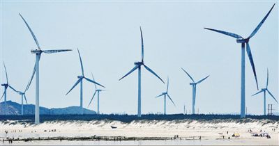 近日,福建省平潭縣平原鎮(zhèn)上攀村,海畔風(fēng)車林立。平潭縣地處海島,全年平均風(fēng)速為8.4米/秒,大于5米/秒的風(fēng)速可達(dá)7000小時(shí),且風(fēng)向穩(wěn)定。得天獨(dú)厚的地理優(yōu)勢(shì),造就了當(dāng)?shù)刎S富的風(fēng)力發(fā)電資源。