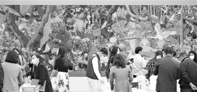 圖為10月12日在《生物多樣性公約》第十五次締約方大會新聞中心拍攝的大幅彩繪作品。 新華社記者 陳君清攝