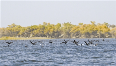 10月底,位于新疆巴音郭楞蒙古自治州尉犁縣境內的羅布淖爾國家濕地公園已被胡楊染成一片金黃。2021年8月2日,新疆啟動第22次向我國最長內陸河——塔里木河生態輸水。隨著塔里木河綜合治理的不斷推進,兩岸綠色走廊生態環境持續得到修復。地處流域內的羅布淖爾國家濕地公園成為了眾多鳥類的棲息地。