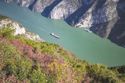 11月18日,在重慶市巫山縣,一艘船舶從長江巫峽段駛過。