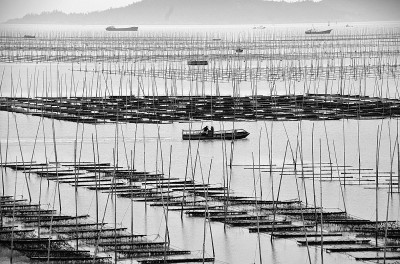 干江鎮是浙江省臺州市漁業強鎮,而下礁門村是臺州市海水養殖發達村。最近幾年,干江鎮下礁門村創新紫菜養殖方式,使養殖水域向淺海擴展,且所產紫菜具有質量好、產量高、管理方便、防病力強等優點,紫菜養殖成為該村漁民增收致富的重要渠道。圖為2月26日,滿載紫菜的船只穿梭在養殖基地。段俊利攝/光明圖片