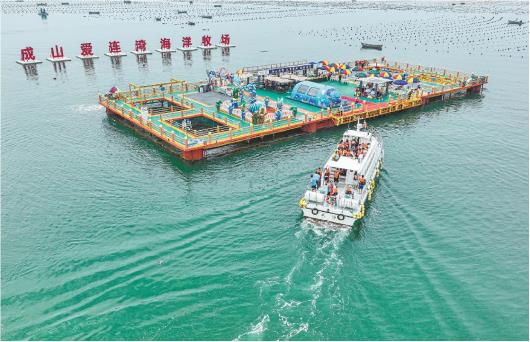 進入盛夏時節,榮成海洋牧場迎來旅游旺季。榮成市擁有15處國家級海洋牧場,近年來大力發展休閑漁業經濟,將海洋牧場打造為游客們的海上樂園,每年吸引游客數萬人次。