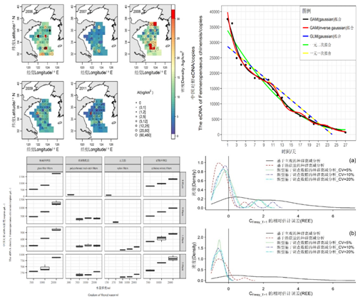 漁業資源科學調查是進行漁業資源評估和管理的基礎,傳統的資源調查方法費時費力,漁業資源調查普遍存在有限性;因此,對于全球絕大部分漁業,因缺乏長期連續的調查數據,常規性資源評估模型不具備普適性;并且現有數據有限性漁業資源評估方法鮮少能有效利用間斷性調查數據,評估結果精準性較差。針對現行漁業資源調查和評估存在的問題,黃海水產研究所漁業資源生態學團隊以中國對蝦為研究對象,闡明了其釋放DNA在水體的存留時間,掌握了中國對蝦生長與其釋放eDNA量之間的關系,首次建立了中國對蝦生物量評估的eDNA技術,并在渤海中國對蝦生物量評估中進行驗證,取得了較好的效果;以小黃魚為例,首次應用地理統計二階廣義線性混合模型量化了晝夜時段對魚類可捕系數的影響,為優化評估近海漁業資源的時空分布和年際資源量豐度指數提供了一種新方法;同時,以我國漁業資源調查數據為基礎,構建了一種新型的數據有限性漁業資源評估方法,實現了對漁業產量數據和間斷性調查數據的充分利用。該成果提高了漁業資源調查和評估精確性,為我國漁業資源精準評估和科學管理提供了技術基礎,同時,也為提升我國在國際漁業談判與協商的話語權提供了有力支撐。