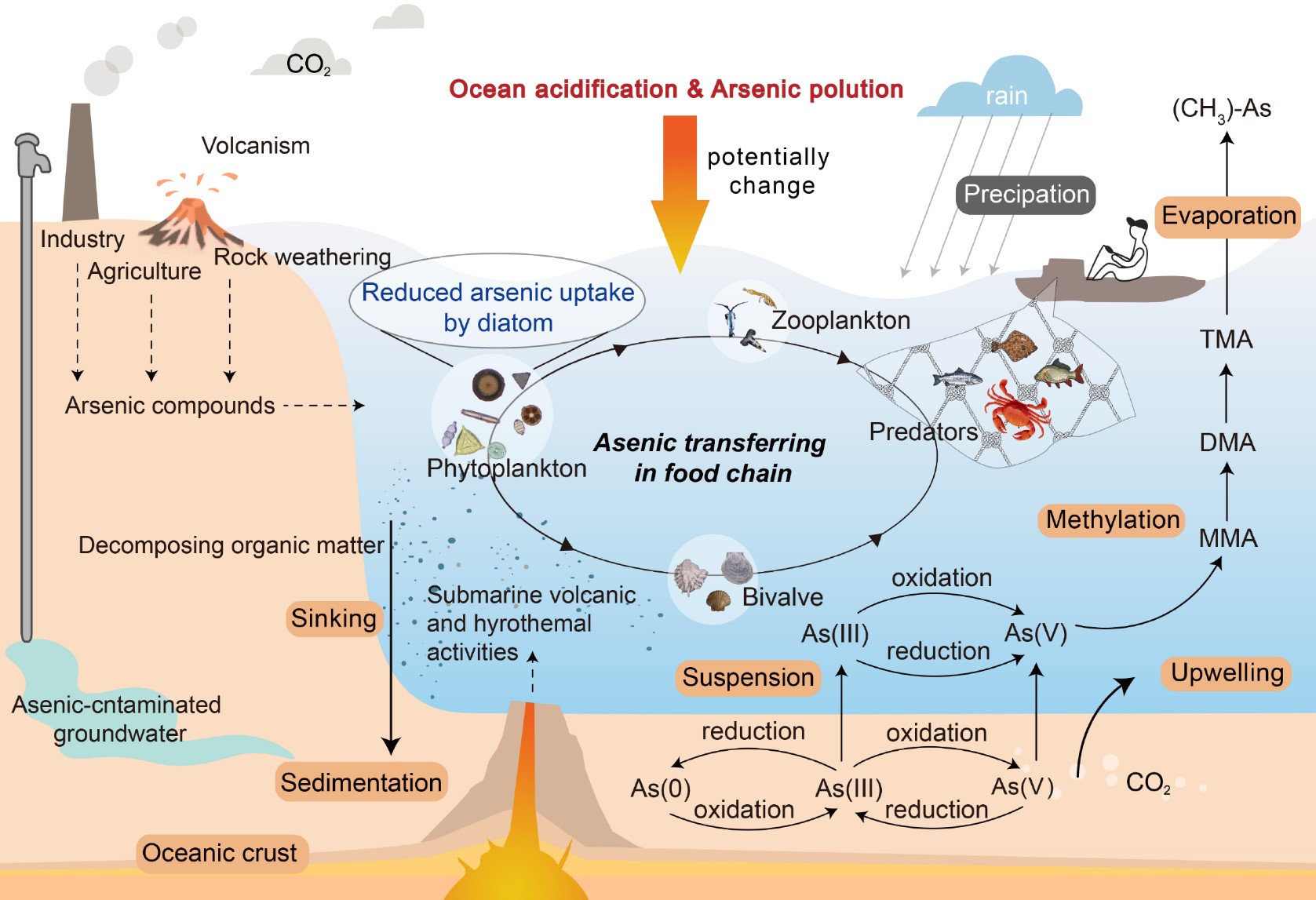 圖1. 海洋砷元素生物地化循環示意圖