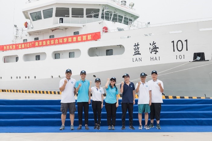 黃海水產研究所1947年成立于上海,是中國最早的海洋漁業綜合科研機構。1949年,由上海遷至青島。此后的70余年里,一艘艘科學調查船離港起航,從拉開新中國海洋漁業調查序幕的木殼船“京漁”輪,到鋼殼的“黃海103”號,從1984年挪威政府贈送的“北斗”號,到如今3000噸級海洋漁業綜合科學調查船“藍海101”號入列,科學調查船的不斷升級換代,從一個側面清晰地反映了黃海水產研究所海洋科研的發展與深入,也記錄了一代代科研人員百折不撓、砥礪前行的奮斗精神。截至2021年9月底,“藍海101”號已完成18個航次,累計航行3.1萬海里。在執行西沙海域任務期間,適逢2019年第28號臺風“北冕”影響南海海域,西沙海域風力9-10級,浪高6米,“藍海101”號調查船和全體工作人員經受住了考驗,其船舶穩定性、操縱性、耐波性和適航性均運行正常,并保質保量完成了調查和海試任務。