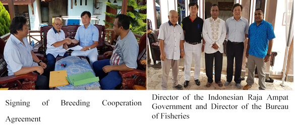 At present,YSFRI has established three breeding demonstration bases in Sauron (Indonesia),Batam (Indonesia) and Malaysia which focuses on marine fish breeding and net cage fish culture technology.YSFRI has provided technical guidance on the cultivation and breeding of fish stock, and recommended optimization and rational measures on the disease prevention and control of parasites, and feed formulation.Several species of fish stock, including napoleon wrasseCheilinus undulatus, Leopard coral grouper Plectropomus leopardus, gentian grouperEpinephelus Lanceolatus, yellowgrouperEpinephelus awoara, tiger grouperBlotchy rock cod,humpback grouperHumpback grouperand others have been collected and conditioned, and live bait cultivation system has been established.Net cage culture technology has been improved and demonstrated using large wind-resistant net cages.