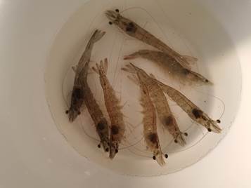 驗收專家現場統計了凡納濱對蝦家系數量,查看了苗種生產記錄和親蝦養殖情況。課題組共計構建凡納濱對蝦家系262個,擴繁仔蝦蝦苗5.6億尾。隨機撈取的對蝦體色正常、胃腸飽滿、活潑健康;抽測了凡納濱對蝦養成期親蝦體重,平均體重23.5g。