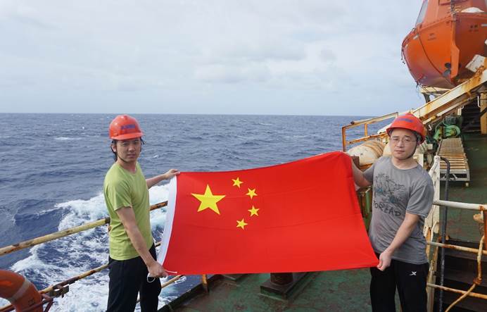 中國水產科學研究院黃海水產研究所張吉昌、樊鋼洲受農業農村部派遣,作為國家科學觀察員,跟隨我國南極磷蝦漁船圓滿完成2019/2020漁季科學觀察及海上科學調查任務。返航途中正值國慶佳節,他們在海上為祖國慶生,祝愿祖國繁榮昌盛、國泰民安。
